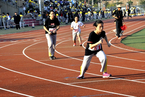 红色赛道上,黄广健儿分秒必争,力争以最快速度向终点冲刺。