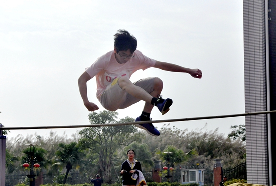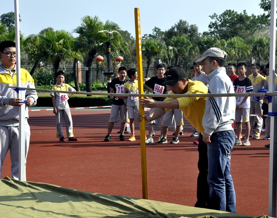 横杆高度的些许提升都需经过严格细致的观测确认,高度数据的点点变化不断直接反映学生选手的真实实力,也展示着黄广运动健儿跳高的最佳水平。