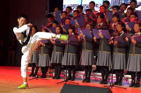 一位位小战士在英达礼堂歌颂祖国,高唱革命,稍显稚嫩的歌喉却能将革命先辈们抵抗外敌、振兴中华的激情的完美诠释。
