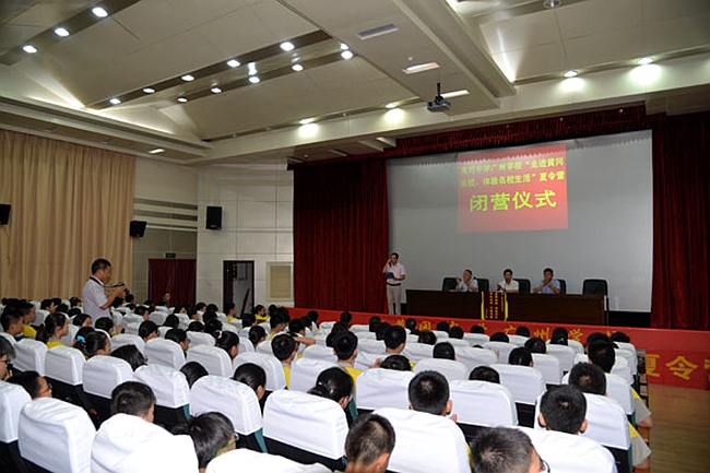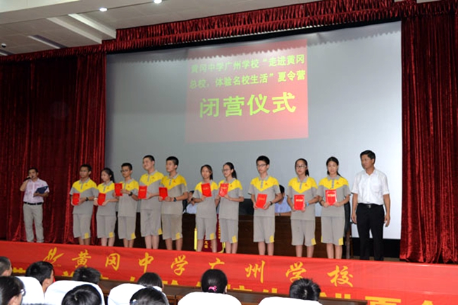陈忠新副校长首先就本年度为期9日的夏令营活动作全面总结,并特别对广州学校学生不畏酷暑、自理自立的优秀表现给予高度评价。陈校长指出,同学们此行体验了博大精深的荆楚文化、小城大爱的黄州文化、悠久深厚的黄高文化、革命老区的红色文化、黄州赤壁的东坡文化,不仅学习了知识,更有精神上的升华,希望同学们将感受、学习到的种种宝贵精神用在将来学习生活中,追求卓越,勇往直前。陈忠新副校长亲自为60位优秀营员颁发荣誉证书。