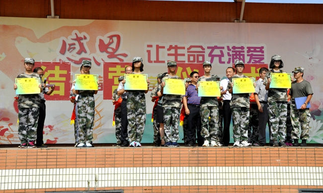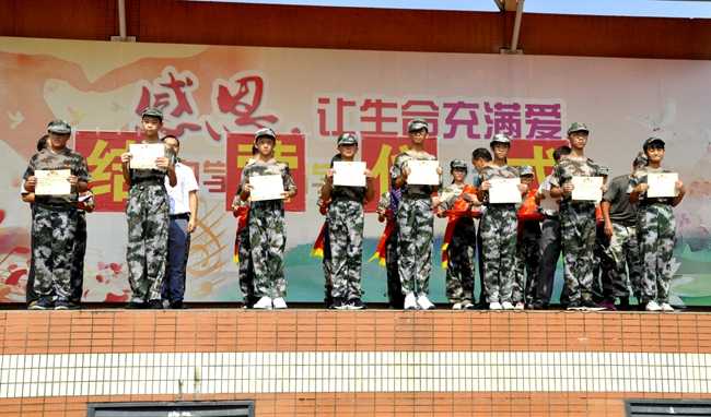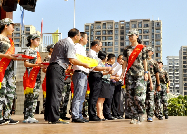 短短的4天训练中,涌现出一批遵守纪律、积极向上、表现优异的优秀集体与优秀个人。学校特别授予七(1)班、高一(4)班、高一国际、增城学校七(1)班、高一特训队、国旗班等15 个班级“军训先进集体”称号;授予张晓凡、周雅婷、李欣欣 、陈信、徐帆 等 234 名同学“军训先进个人”称号。学校领导亲自为获得表彰的班级与个人颁发奖状,对获奖单位和学生进行鼓励。