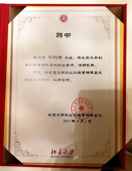 游烈峰校董受邀担任北京大学创业训练营专家导师,发表精彩演讲