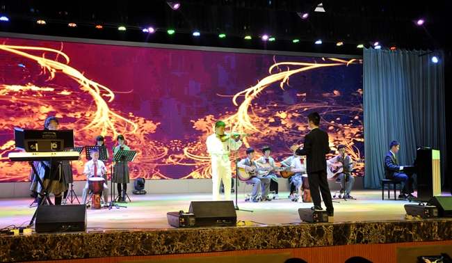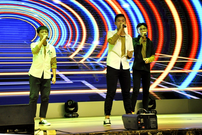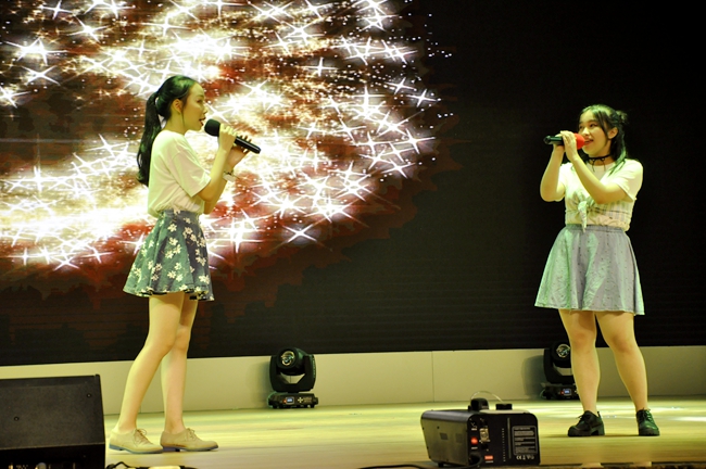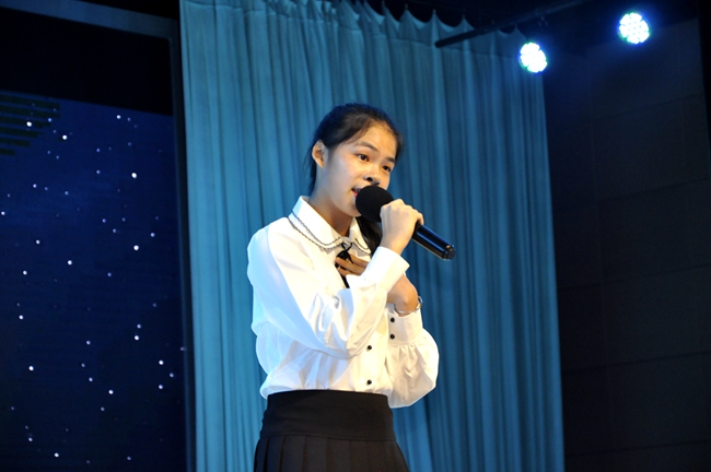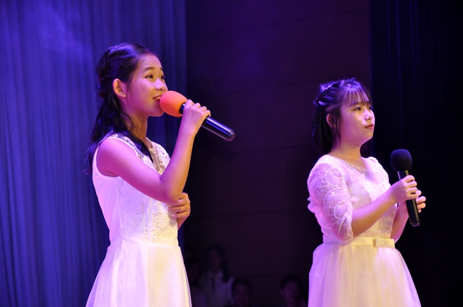 小歌手们领衔演绎的“黄广好声音”在英达礼堂隆重登场,国、粤、英三语的悦耳歌声和着掌声、欢呼,在礼堂中久久荡漾。