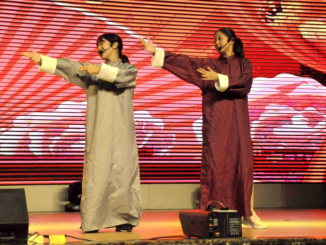 生活部教师则着眼于学生日常生活,通过惟肖惟妙的精准模仿,重现军训学子的言行状态,吸人眼球的反差式表演令现场师生忍俊不禁。
