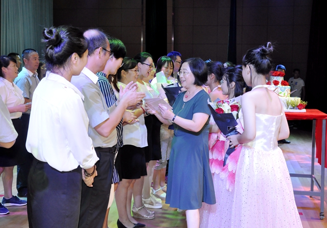 范小星校长代表学校欢迎每一位经过考验、成功跨入广州市黄广中学,同时向广州市黄广中学慰问,赠予教师们贺卡与鲜花表达祝福。
