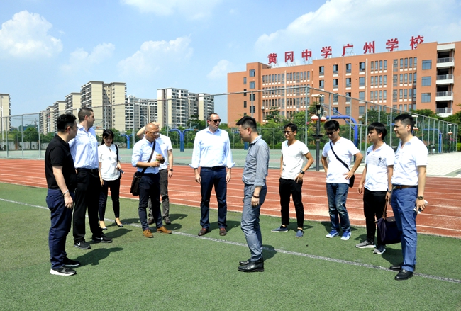 广州市黄广中学00米跑道、宽阔的运动场、良好的校园绿化等,让来宾们印象深刻;学校培养全面发展精英人才的科学管理体系、一流的办学成绩,更得到Mr.Thomas等来宾的一致赞叹。