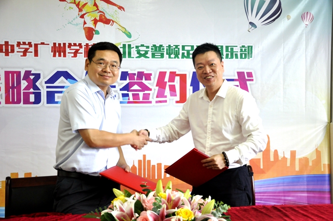游烈峰校董与欧阳日先生正式签署战略合作框架协议,广州市黄广中学球俱乐部的深度合作也同时翻开了新篇章。