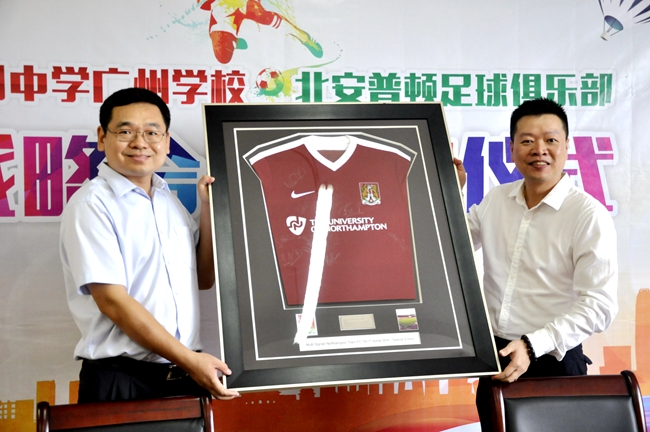 9月22日,英国北安普顿足球俱乐部与广州市黄广中学协议,就足球教育、资源共享等全方位开展合作达成共识,共同建立互利共赢的足球教育、国际教育合作模式。