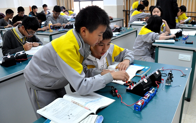 新建的“图书&实践课程基地大楼”(正对校大门)开设汽车驾驶、烹饪、3D打印、机器人、动漫设计、微电影制作等选修课专用教室,供学生实践课使用。