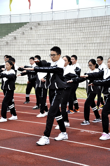 踏步、伸展、弯腰、抬腿、扩胸、踢腿、体转、跳跃、整理......学生们跟随音乐的快慢变化灵活调整自己的节奏、幅度与力度,保障身体在安全、科学的前提下达到锻炼效果,同时呈现出力与美,熟练的动作转换、一致的方向变动也体现出班级成员完美的团队默契。