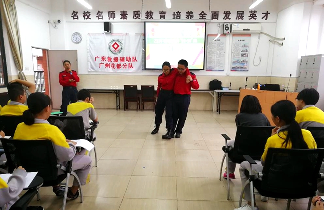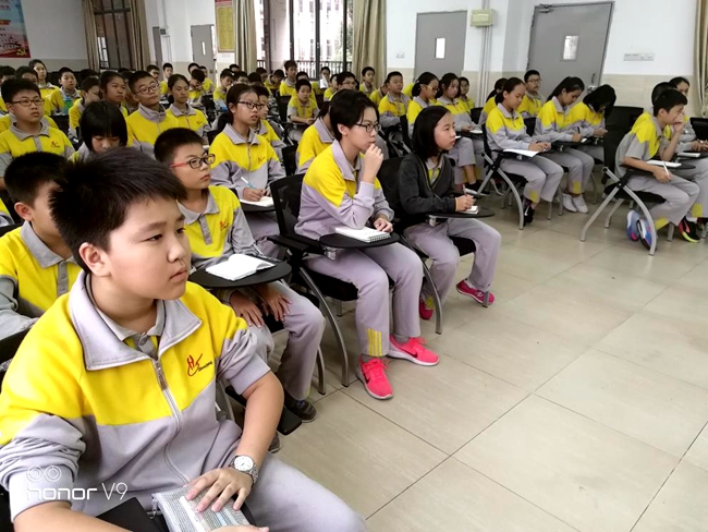 现场同学们仔细听、认真记,安全教育课给了广州市黄广中学体验。