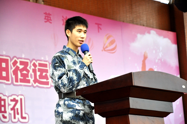 来自高一英达班的张子豪同学作为全额奖学金获得者之一,上台为现场师生讲述自身学业表现稳步提升的秘诀,分享自身作为优秀学生代表的内心感悟,并号召现场全体学生将勇于拼搏、坚持不懈的奋斗精神延续到体育赛场上,追求卓越,争攀高峰,为“黄广青春”留下一抹抹亮丽色彩。
