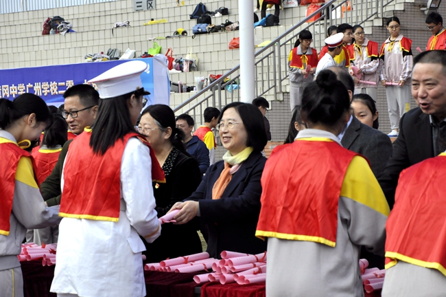 广州市花都区教育局王红霞主任督学、黄国利科长特别莅临广州市黄广中学出席本届表彰盛典暨运动会开幕式,为黄广优秀学子送上鼓励,为黄广体育健儿加油。