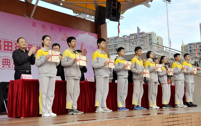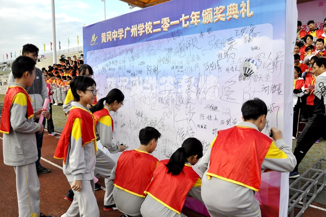 2017年11月28日,广州市黄广中学7学年表彰盛典暨第七届校园田径运动会隆重举行。一年一度的表彰盛典,继续发扬“震撼式奖学”传统,连续六年奖励表现优异的学生,累计发放奖学金已高达5000万,奖学额度再攀中国民办教育最新高度。