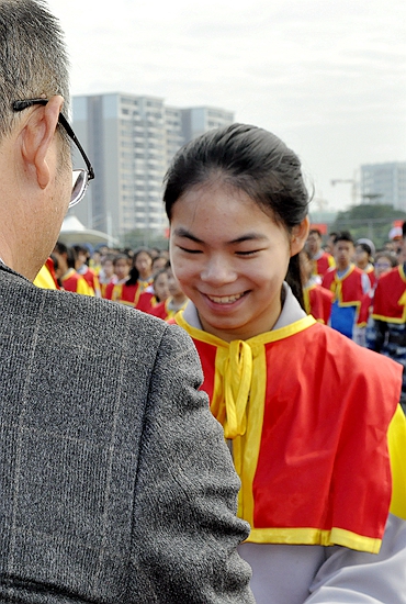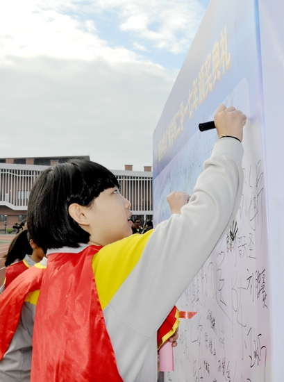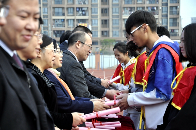 获奖学生以朝气蓬勃的姿态步上讲台,以阳光自信的态度从领导手中接过红色表彰令,并现场执笔签名,在黄广英雄榜上留下个性与骄傲的一笔。