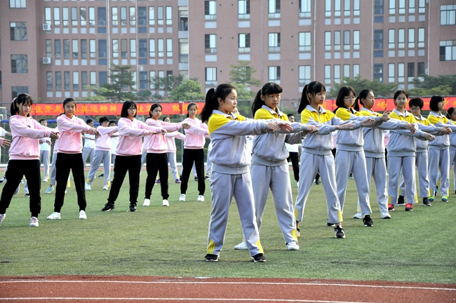 五彩缤纷的身影配合动感十足的音乐节奏,在绿茵场上迅速大摆阵型,广播操首次作为单独节目登陆校运会大型开幕式,跑跳、踢腿、扩胸……每一个熟悉的动作经过八年级学生的认真诠释竟展示出非同一般的新鲜风格。