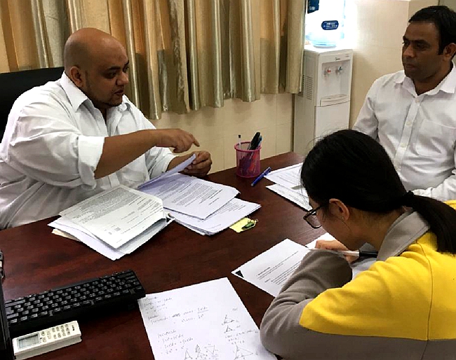 ▲国际部教学校长 Mr Ali-Farzal 及数学外教 Hasan对学生模拟面试