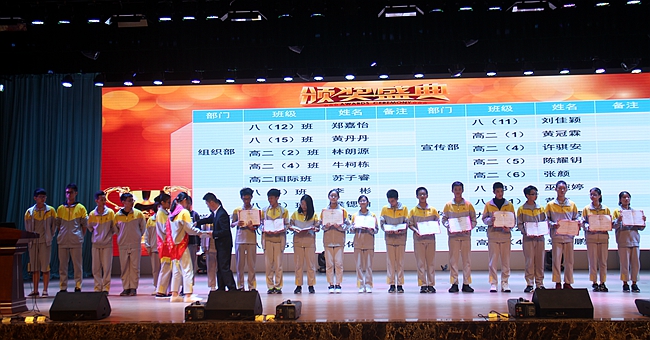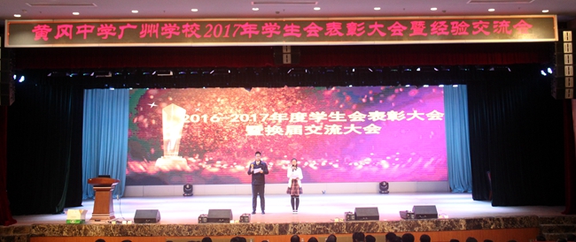 经过又一年四季的轮回,广州市黄广中学)2016届学生会队伍完满完成使命,迎来了2017届学生会的“新鲜血液”——广州市黄广中学表彰暨换届交流大会于12月1日在英达礼堂隆重召开。