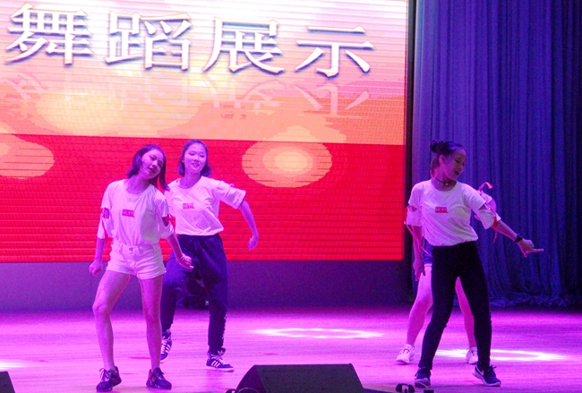 大会中,一个突然降临的惊喜,全面扭转了现场庄重严肃的氛围——来自学生会文体部的四位同学带来魅力四射的劲舞show!动感的音乐、张扬的舞姿将现场同学们的兴致与热情瞬间释放,同学们纷纷被带动起来,场内欢呼声不断。