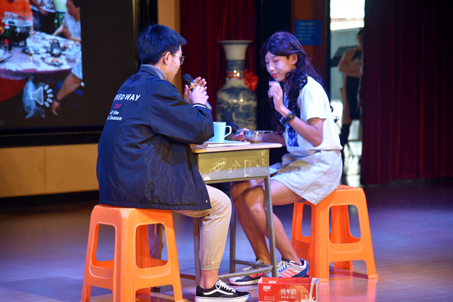 没错,这是全场唯一一个爆笑连连、掌声不断的剧目环节,观众不由自主配合剧情对黄广学生演员的互动号召作出热烈回应,正如现场同学所说:气氛high到爆哦!