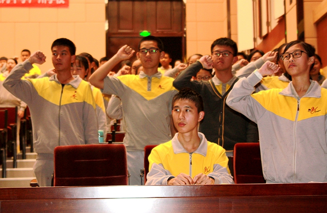 “我志愿加入中国共产主义青年团,坚决拥护中国共产党的领导,遵守团的章程,执行团的决议,履行团员义务,严守团的纪律,勤奋学习,积极工作,吃苦在前,享受在后,为共产主义事业而奋斗!”在团员代表王晰同学的引领下,149位即将入团的优秀学生庄严宣誓,铿锵有力的宣誓展现了身为共青团员的决心与斗志。