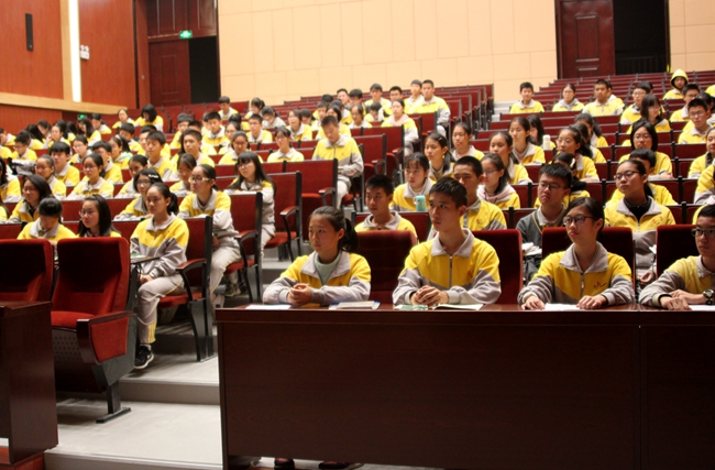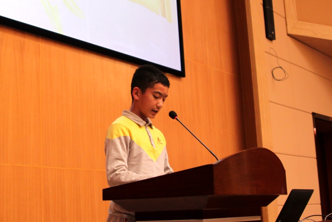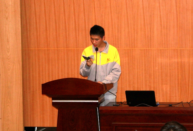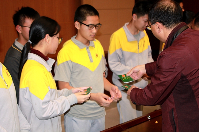 身为2016届第一批老团员兼现任学生会主席,张子豪同学现场宣读《团章》中有关团员义务和权利的条款,号召即将新进入团的同学谨记作为共青团员的重要使命,树立人生目标,以积极向上的态度面对成长过程的种种挑战,在校园学习生活中发挥榜样的示范引领作用。