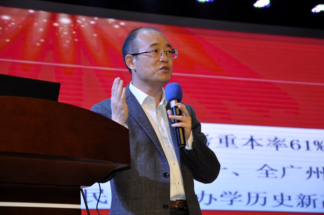 主管高中的孙传华副校长以一系列数据展示黄广高中6年来的跨越式发展、非凡的教学提升能力;他指出,黄广高中独创的五大课程体系,拥有黄广中学(总校)与北京大学的高端资源,建立有效的德育保障体系,研发促进学生学习事半功倍的“智慧学习法”,全国领先的教育大数据智慧学习系统,上述的“五大优势”支撑黄广学校不断超越,不断实现新突破,成为行业的引领学校。