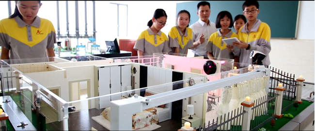 广州市黄广中学在业内率先引进物联网课程,通过智能家居套件、智能城市沙盘、智能车、智能ETC、APP Inventor五个部分,向学生分解讲授物联网的奥秘。