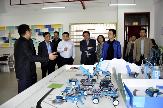 黄广学校领先业内开发的创客实践课程(含物联网、智能机器人、3D建模及打印等高科技课程),着眼于培养学生综合素质、促进学生全面发展的多种类选修课程体系,为学生智能发展、兴趣拓展开辟了全新、广阔空间,得到领导来宾的高度称赞。