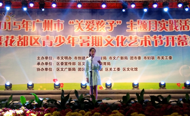 金小钰同学积极履行“羊城小市长”的责任与使命,踊跃参与不同级别、类型的公益活动、社会活动,为青少年及儿童发声。早在2015年广州市“关爱孩子”主题月实践活动暨花都区青少年暑期文化艺术节中,金同学即担任花都区青少年代表,从自身的所见所闻及个人成长历程出发,向现场来自社会各界的来宾发出强烈呼吁,号召积极关注少年儿童身心健康,建议家长满足青少年心智发展的个性化、合理化的基本需求,为孩子营造阳光、向上、温馨、有爱的成长环境。