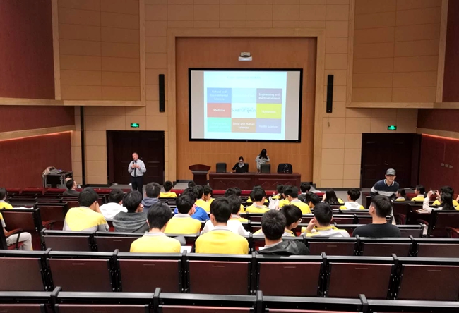 2018年3月,英国南安普顿大学特别派代表莅临学校,为国际高一、高二的同学们开展专题讲座,与未来走出国门的黄广学子进行面对面、零距离的沟通交流。