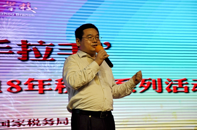 广州市花都区地税局孙国文局长向黄广学校的优异办学成果表示祝贺,并现场诠释本年度税务教育活动以“心连心·手拉手”为核心的内涵与意义,鼓励学生用心理解,更积极、踊跃地投入参与税务知识的学习与了解。