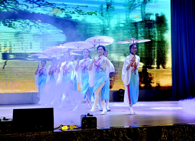 “南方姑娘”踏着轻盈曼妙的舞步为黄广税收教育创造的成果献礼庆贺,温婉娇柔的水乡漫舞带来了别样的视觉享受;