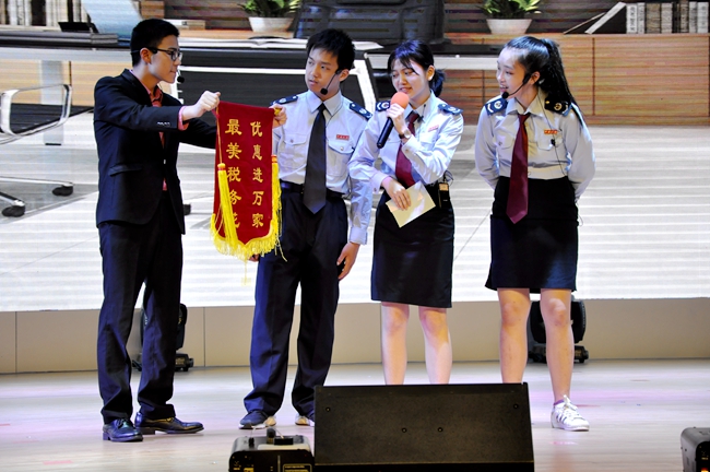 学生演员们化身尽责为民的税务工作人员与依法缴税的良好公民,通过幽默爆笑的对话互动,与师生观众一同寻找“最美税务花”;