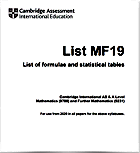 首先,以往CIE数学考试中有2份公式表,分别是基础数学(9709)的MF9表,高等数学(9231)的MF10表,而新考纲下的公示表将合二为一,统一合并为1份MF19表。且经过对比,新的公式表内容上没有增删,只是排版系统一些,分成纯数、机械、统计3大版块,学生考试时查阅相应版块即可。MF19表对于参加高等数学考试的学生来说有一定好处,例如在高数考试时可能需要运用到基础数学的相关公式,学生在备考过程中也不用额外花时间背诵了。