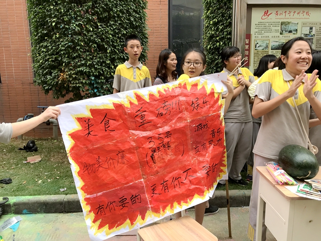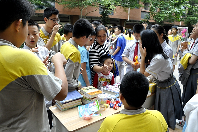 黄广学子在这一天一同实现“华丽转身”,以班级为单位的小商家们谨守“买卖诚信”的大原则,凭精明的头脑、独到的眼光特别引进时下最受大家喜爱的消费项目,琳琅满目,应有尽有,学生们为吸引顾客使尽法宝,无论是各色商品,还是花样百出的经营推销,都为到访的客人们带来新鲜的趣味与欢乐。