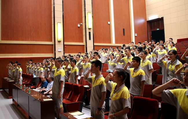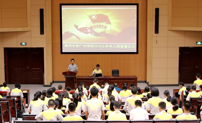 2018年5月,广州市黄广中学校团委策划主办的2018年首批共青团员入团宣誓仪式在东阶梯教室正式举行。