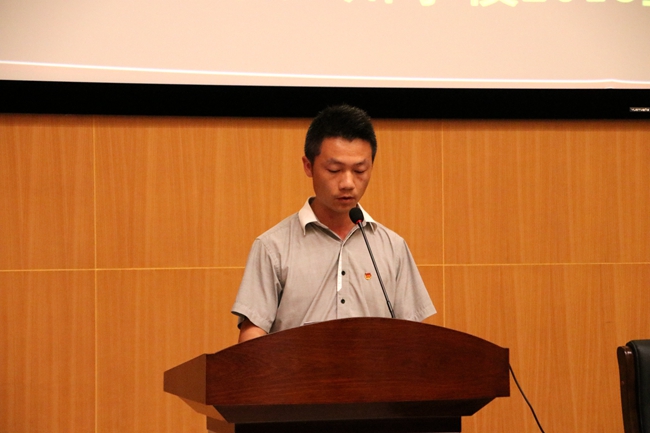 学校团委张森林书记首先代表校团委发表讲话,宣读本次入团积极分子名单,向新晋的团员表示热烈的祝贺和诚挚的欢迎,并为新团员解读中国共青团团徽的光荣神圣及象征意义。