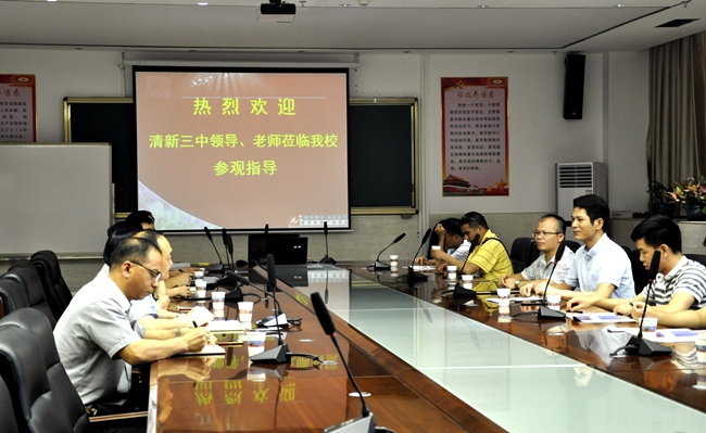 2018年5月中,广东省清远市清新县第三中学(简称清新三中)副校长联同该校各部门骨干教师组团,来到广州市黄广中学下学校,简称黄广学校)进行调研考察。