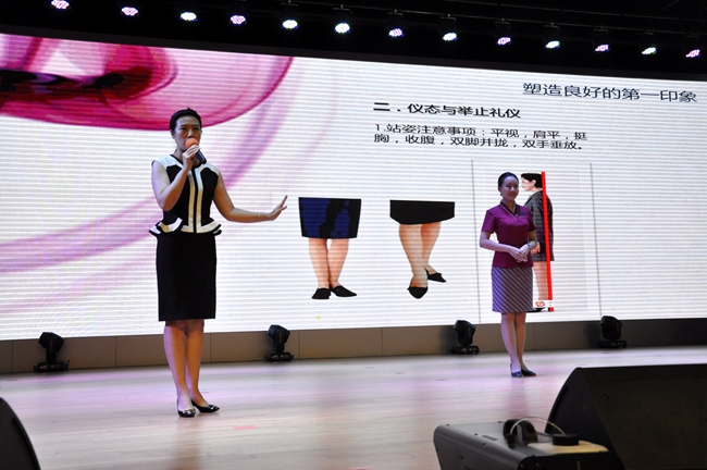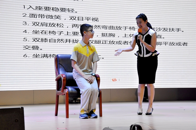 为了激发学生对现代礼仪的学习热情,礼仪,孙女士以即时问答的方式与现场学生展开对话互动,并随机抽取学子上台学习体验,接受来自专业人士的细致指导,贴近日常且趣味十足的对答互动得到师生听众的热烈响应。