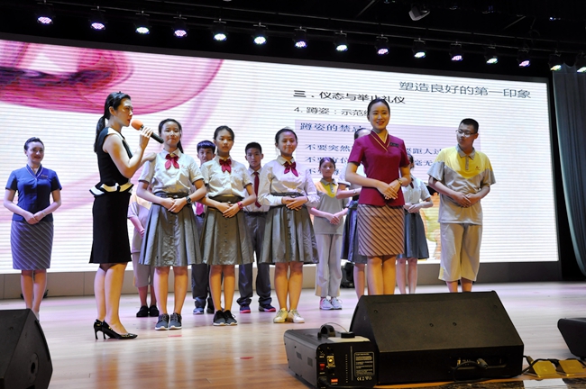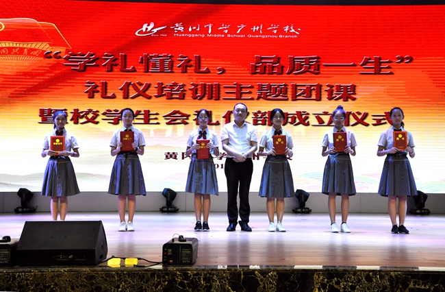 5月16日,广州市黄广中学德育处及下辖团委隆重举行学生会礼仪部成立仪式,并开设礼仪培训主题团课,特别邀请来自中国南方航空公司的资深培训专家为学生开设专题讲座。