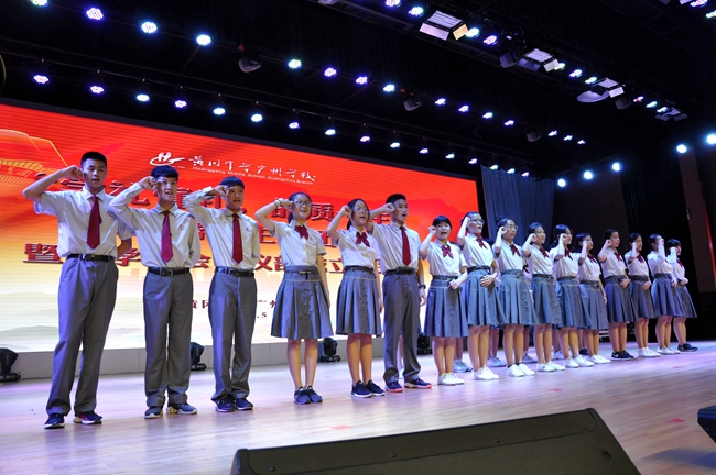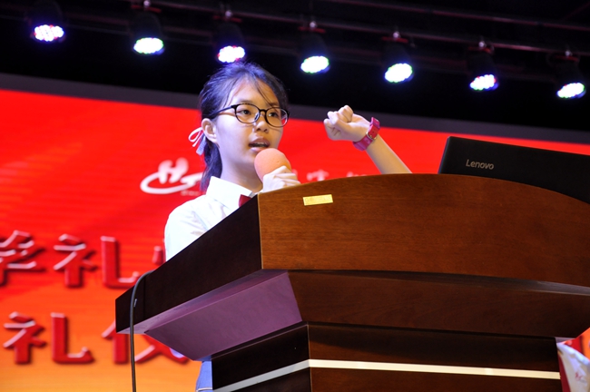 学生会礼仪部长冯曦同学引领团队成员面向现场师生宣告决心,表示将挑起传承礼仪的使命,无负于未来,无负于黄广学校“素质教育”的培育,以实际行动推动校园文明礼仪教育的普及与校园文化建设整体提升。