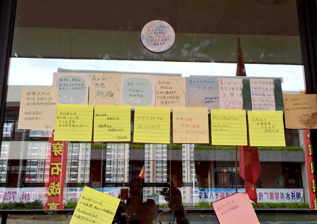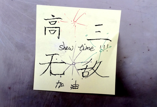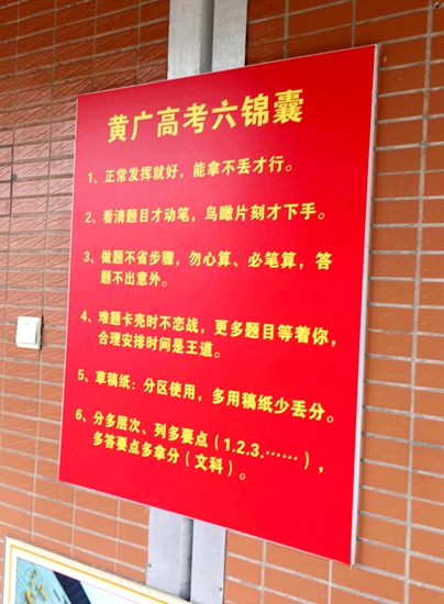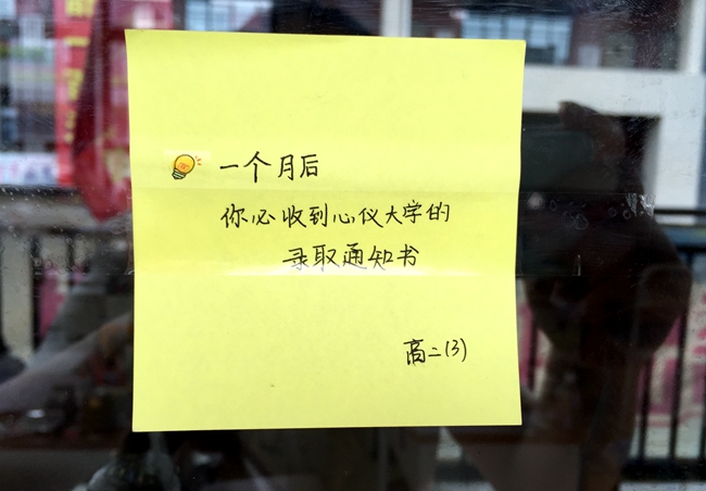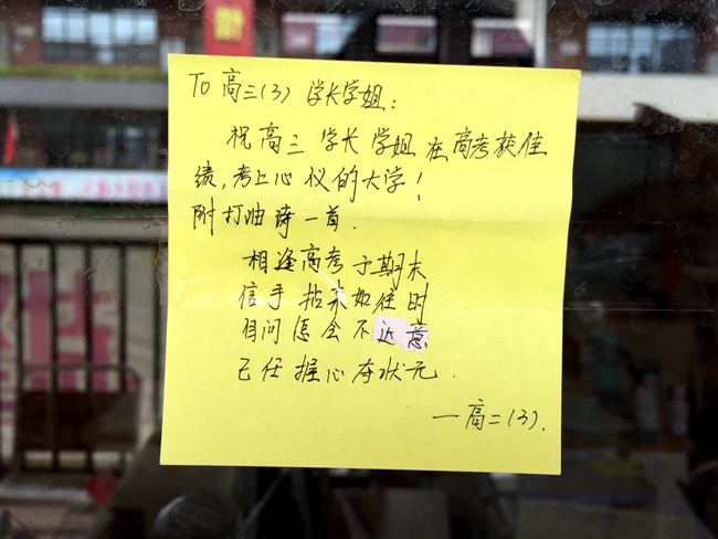 纸条记载着考生们的决心,收藏着学弟学妹的激励,排成斗志昂扬的“阵列”。