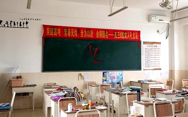 高考即临,坚毅的雄心、豪迈的壮志以及真挚的激励、温馨的鼓舞再次转化为字句,悄然在高三教学楼、教学区的墙面、班级的窗户等区域一一出现。
