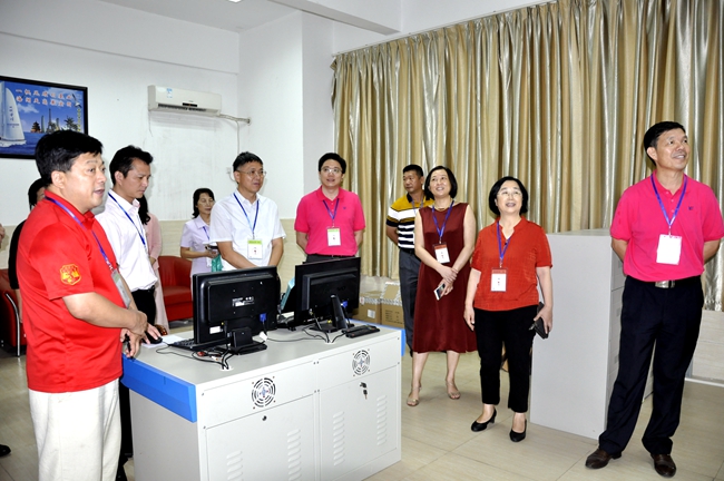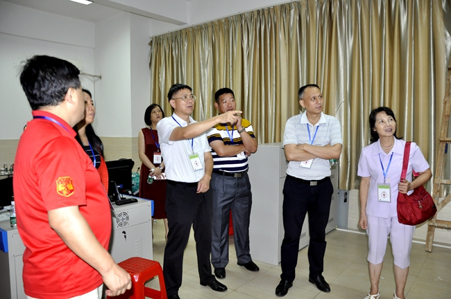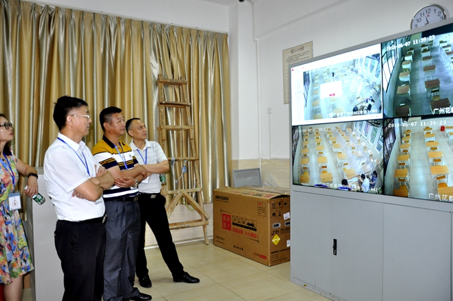 市、区教育局相关领导在梁润佳董事长、范小星校长等陪同下,对考场周边环境、现场秩序维护、考点监考及服务工作进行实地考察,就考场内部考务管理、设备设施等作现场的巡视,领导专家们对黄广考场严谨组织、严密组考、全面服务等措施给予充分的赞许。