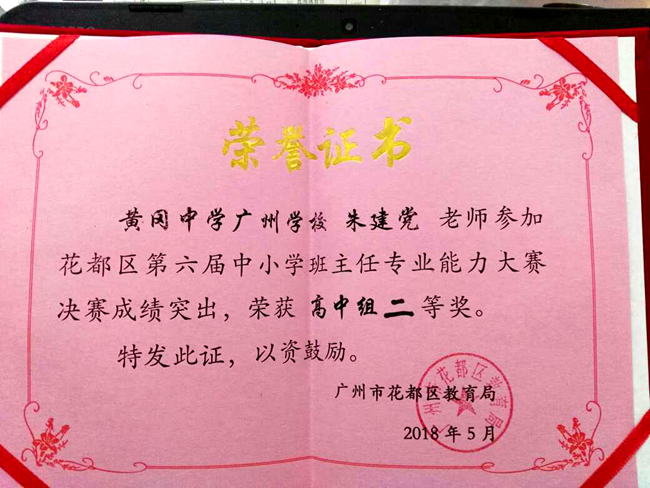 广州市黄广中学下学校,简称黄广学校)朱建党老师作为高中组代表、陈琴红老师代表初中部参与竞赛,并以突出的专业能力发挥,荣获大赛二等奖。