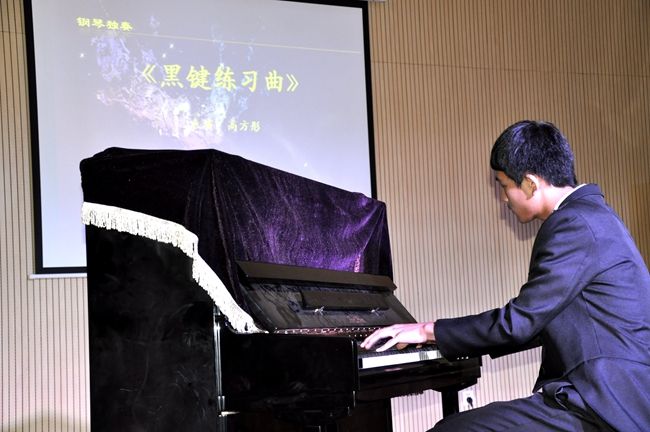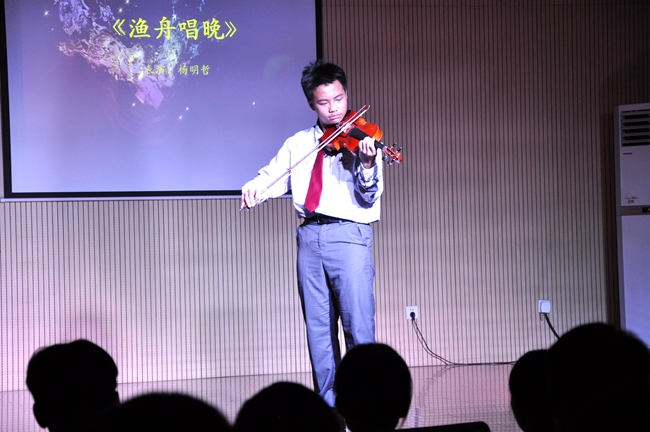 小提琴独奏《渔舟唱晚》,长笛独奏《阳光灿烂照大山》,钢琴独奏《黑键钢琴曲》,音乐实力获得区级大型赛事奖项认可的杨明哲、连钰、高方彤同学轮番上台,婉转悠长的琴音、纯朴通透的笛鸣、跳动活跃的曲乐瞬时交织出美妙而隔绝的音乐时空,听众们的思绪感官随着高超投入的演奏时而漫步、时而飞翔。