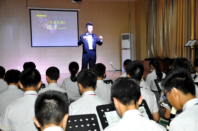 身着正式的燕尾服张森林老师担任整场音乐会的核心指挥,并为学生分析解构“高雅音乐”的意义内容、发展历史、代表作品,以现场活动为例介绍示范参加音乐会的国际礼仪,丰富学生音乐知识,帮助学生对“高雅音乐”形成基本认识,拓宽学生认知音乐的视野,提高学生对音乐的品鉴能力,促使学生初步懂得如何欣赏“高雅音乐”,了解欣赏音乐会时要注意的言行规范。