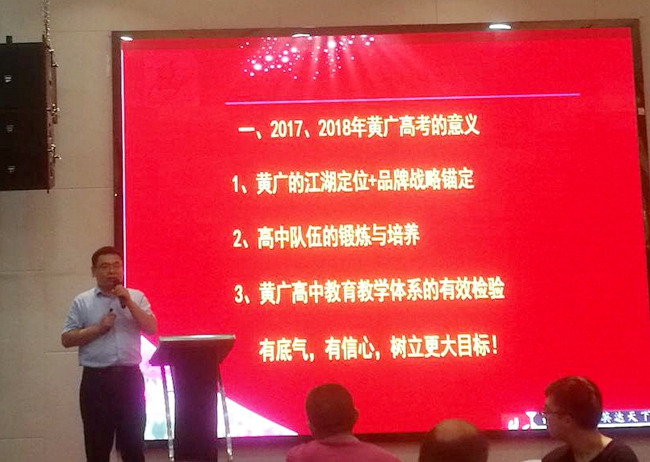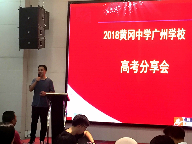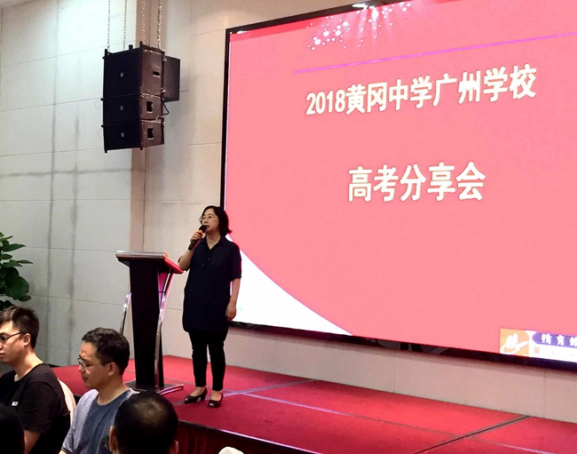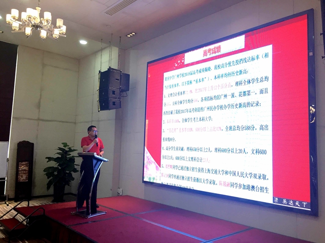学校领导登上讲台,对广州市黄广中学span style="line-height:2;">2018年高考、中考成果作出分享: