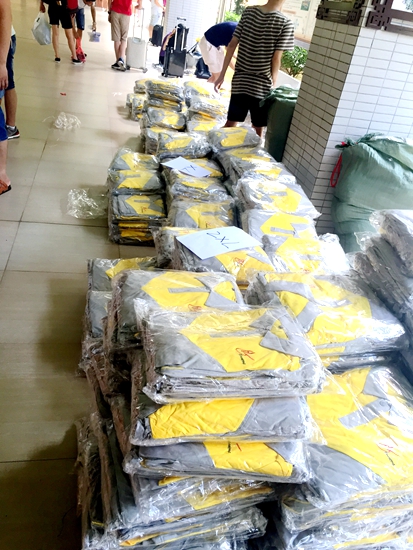 寓意“辉煌璀璨”的灰黄校园制服成功吸引了大批学生与家长的驻足,领取校服的人群迅速聚集,孩子们都想亲手拿到自己的第一套“黄广装备”!这是身为黄广校园一分子的闪亮标志!